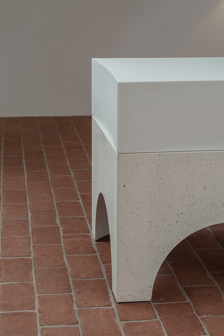 Marienort, Beton mit Zuschlag aus Lasa-Marmor, 145 x 75 x 66 cm massiv aus einem Stück, gefräst